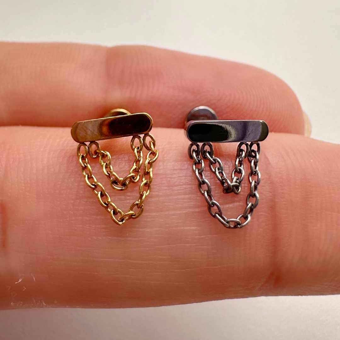 - Labret em titânio com correntinhas